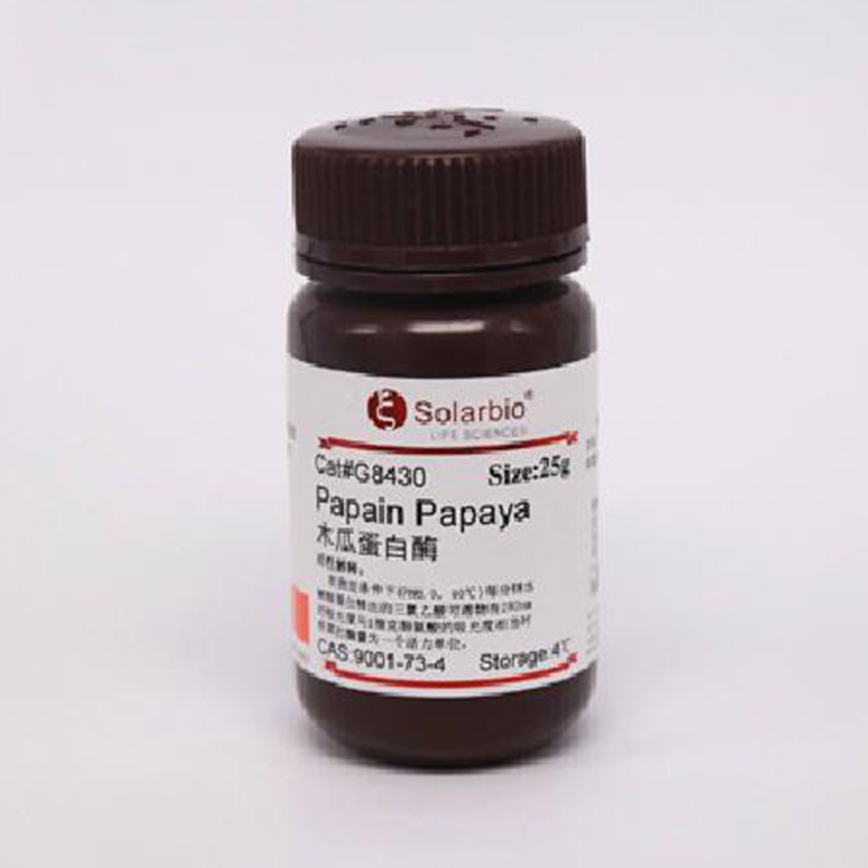 性状:为乳白色至微黄色粉末,具有木瓜特有的气味,稍具有吸湿性。水解蛋白质能力强,但几乎不能分解蛋白胨,
