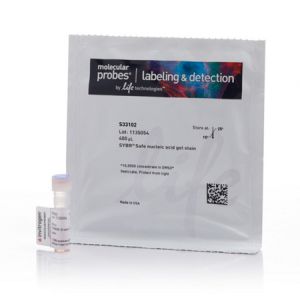 SYBR® Safe染料相当于10,000X浓度的DMSO,可作为溴乙非啶溴化物溶液使用。 SYBR® Safe染料可以混合成一种琼脂糖凝胶。 这种凝胶能够在电泳中染色,或者电泳后在SYBR® Safe 染料溶液中培养。其避免过度光暴露的原始包装下,SYBR® Safe 染料可在室温下储存。为最终的便利起见,可提供 SYBR® Safe E-Gel预制琼脂糖凝胶。